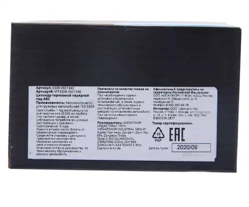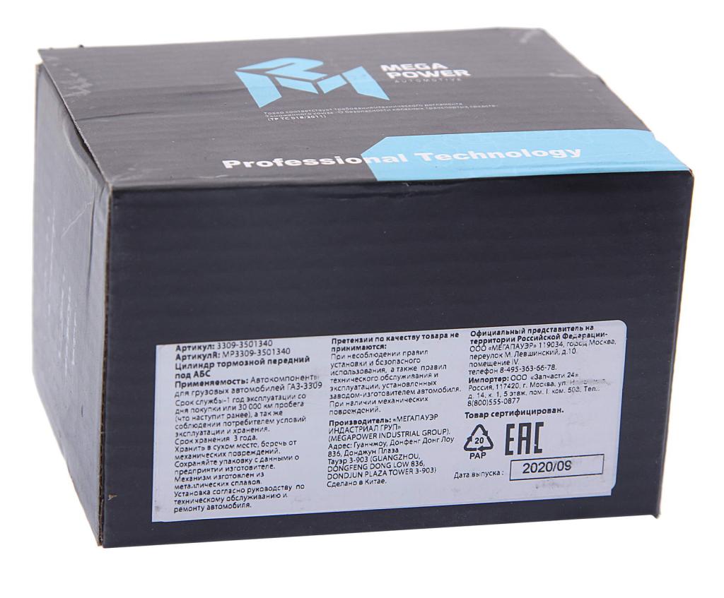 | Наименование | Цилиндр тормозной передний ГАЗ-3309 под АБС MEGAPOWER |