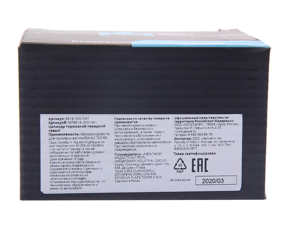 | Наименование | Цилиндр тормозной передний ГАЗ-3308,66 левый MEGAPOWER |