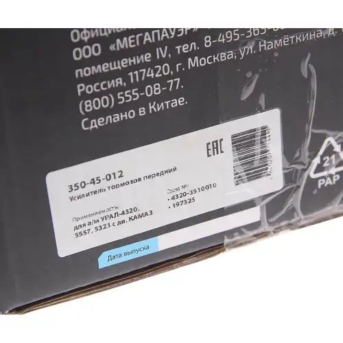 | Наименование | Усилитель УРАЛ-4320,5557,5323 тормозов передний в сборе дв.КАМАЗ MEGAPOWER |