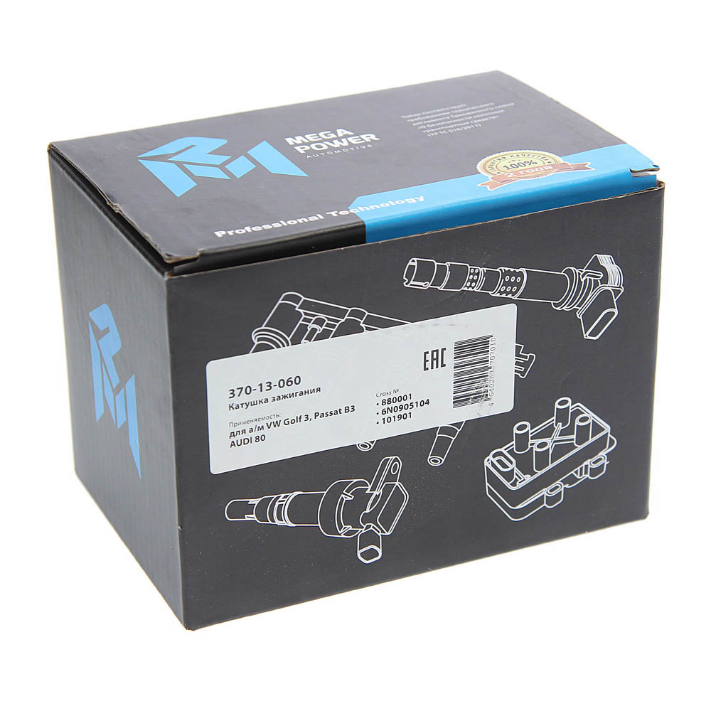 370-13-060 MEGA POWER Катушка зажигания VW Golf 3,Passat B3 AUDI 80 MEGAPOWER
