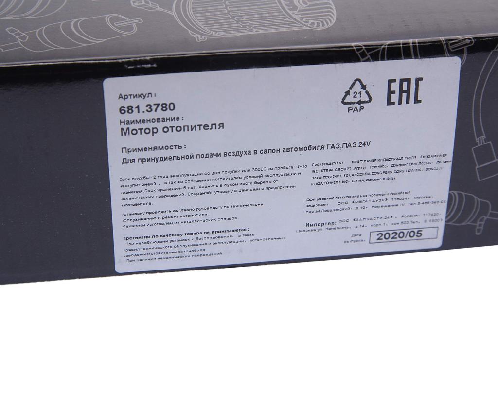 370-15-009 MEGA POWER Мотор отопителя ГАЗ,ПАЗ 24V MEGAPOWER