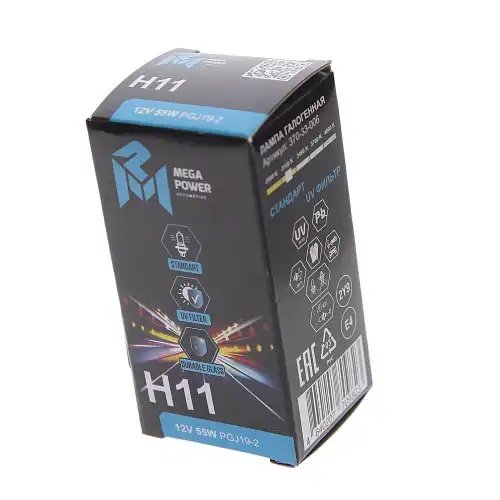 | Наименование | Лампа 12V H11 55W PGJ19-2 Standart MEGAPOWER |