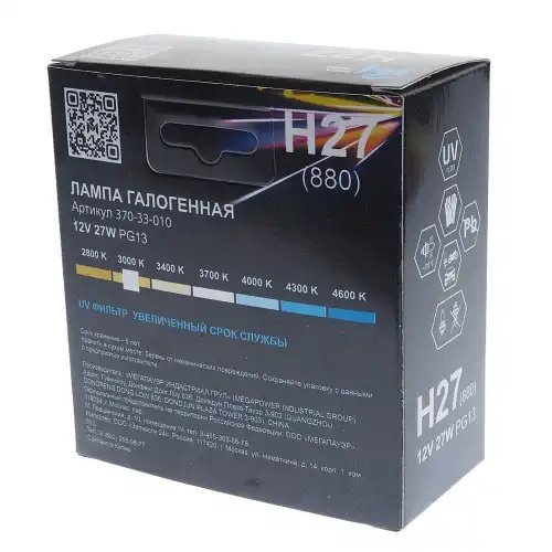 | Наименование | Лампа 12V H27(880) 27W PG13 бокс (2шт.) Long Life MEGAPOWER |