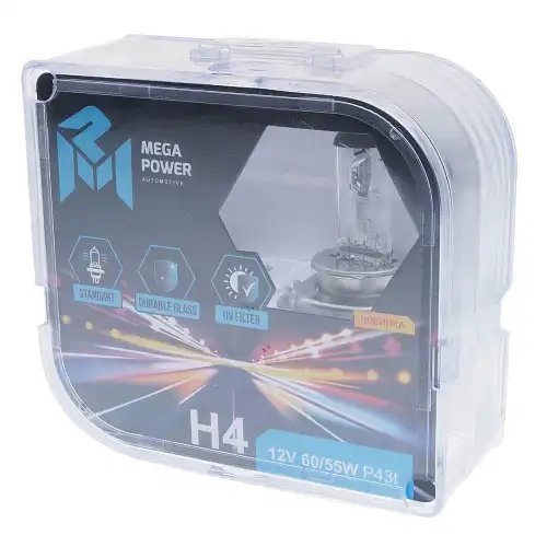 37033022 MEGA POWER Лампа 12V H4 60/55W P43t бокс (2шт.) Standart MEGAPOWER