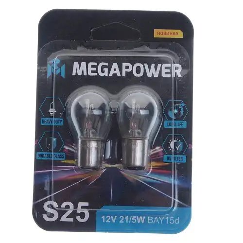 | Наименование | Лампа 12V P21/5W BAY15d блистер (2шт.) Heavy Duty MEGAPOWER |