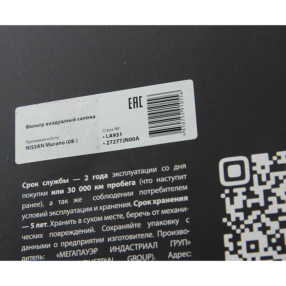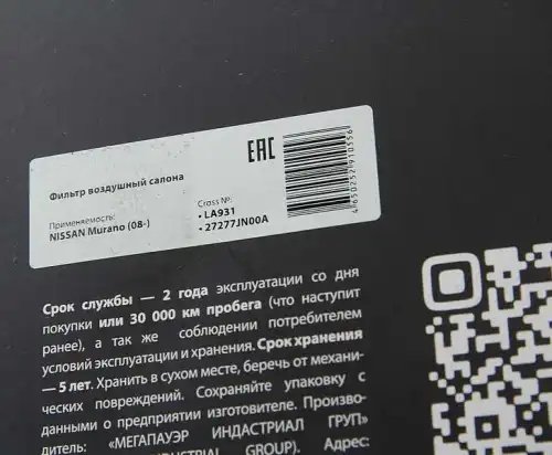 | Наименование | Фильтр воздушный салона NISSAN Murano,Teana (08-) MEGAPOWER |
