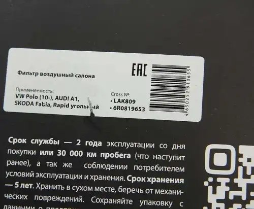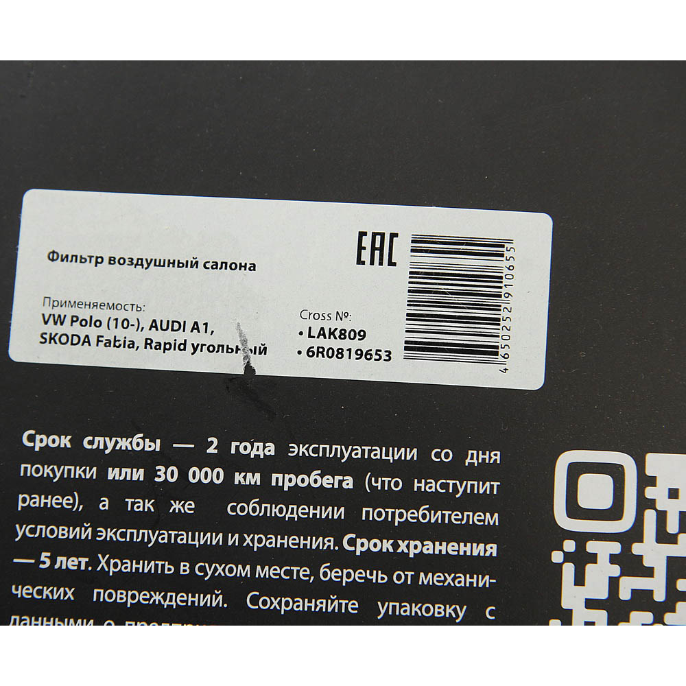 | Наименование | Фильтр воздушный салона VW Polo (10-) AUDI A1 SKODA Fabia,Rapid угольный MEGAPOW |