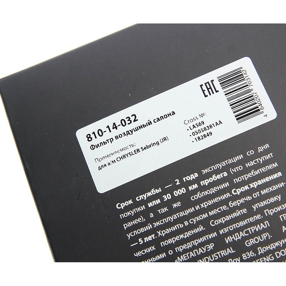 810-14-032 MEGA POWER Фильтр воздушный салона CHRYSLER Sebring (JR) MEGAPOWER