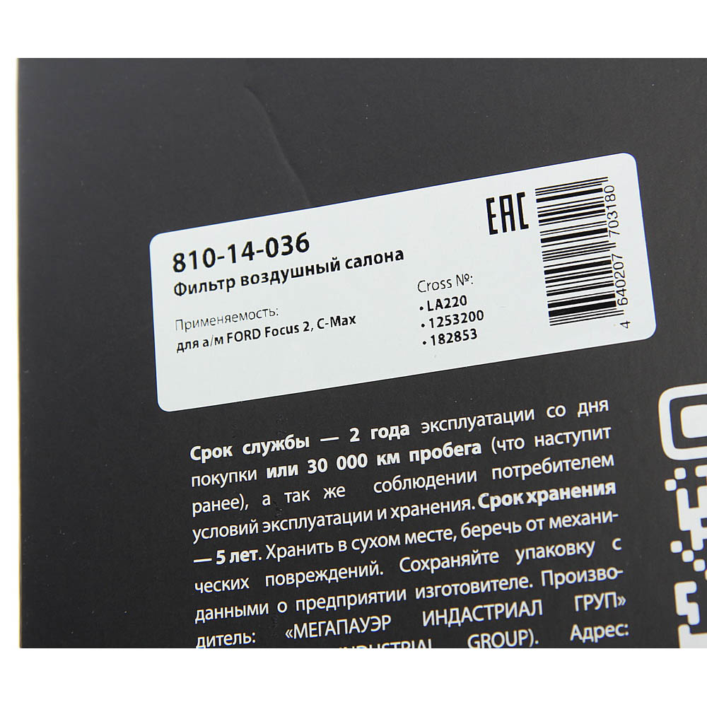 810-14-036 MEGA POWER Фильтр воздушный салона FORD Focus 2,C-Max MEGAPOWER