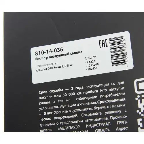 | Наименование | Фильтр воздушный салона FORD Focus 2,C-Max MEGAPOWER |