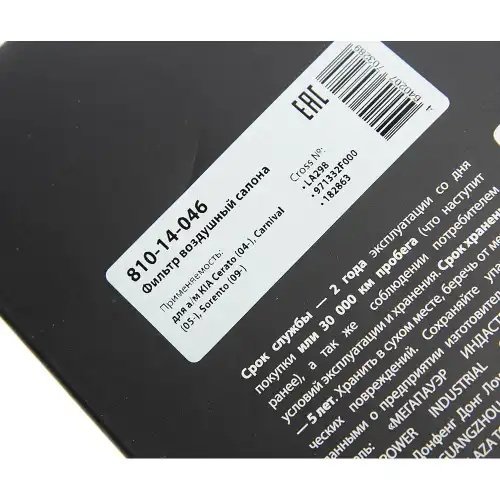 | Наименование | Фильтр воздушный салона KIA Cerato (04-),Carnival (05-),Sorento (09-) MEGAPOWER |