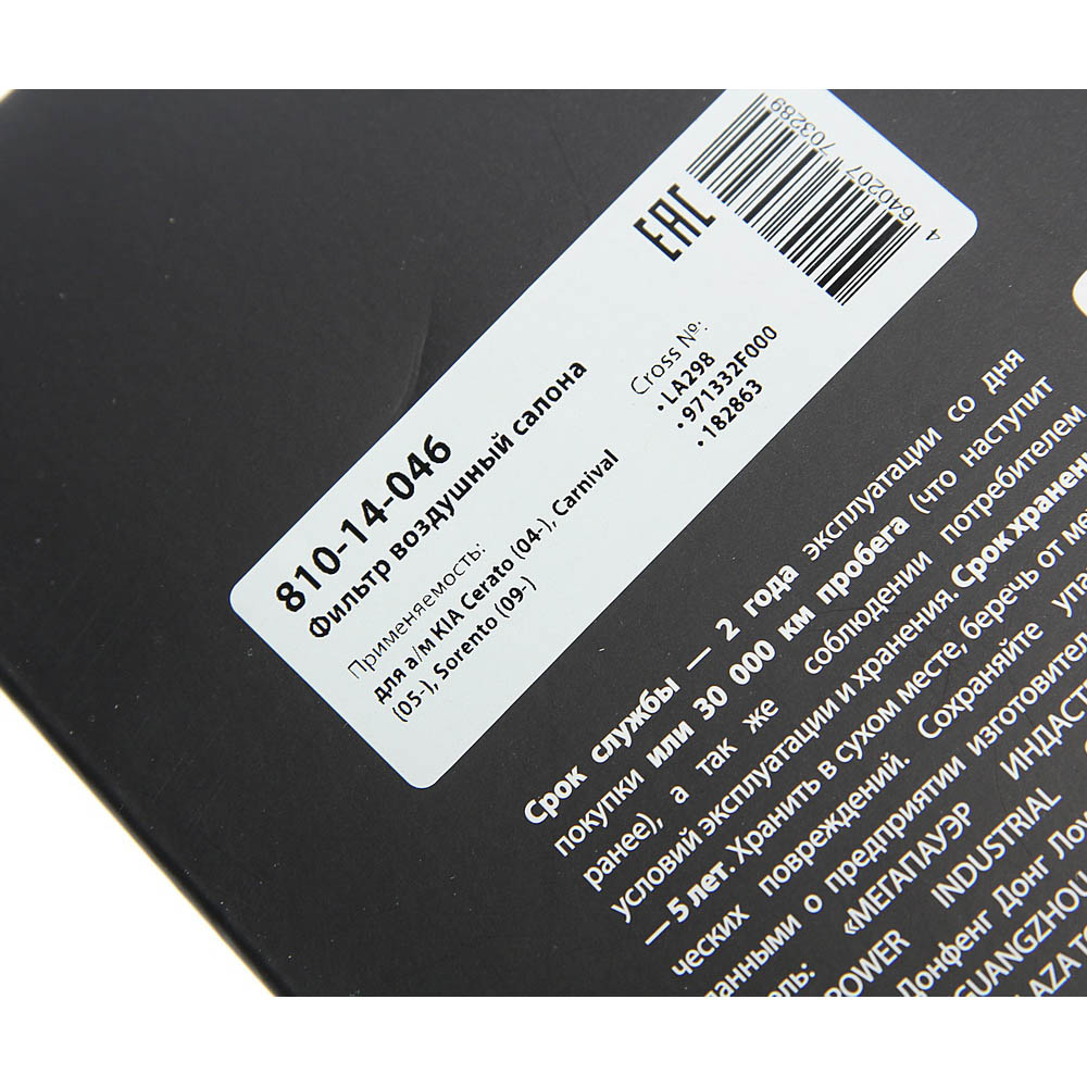 810-14-046 MEGA POWER Фильтр воздушный салона KIA Cerato (04-),Carnival (05-),Sorento (09-) MEGAPOWER