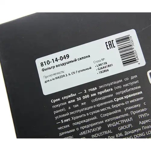 | Наименование | Фильтр воздушный салона MAZDA 2,6,CX-7 угольный MEGAPOWER |