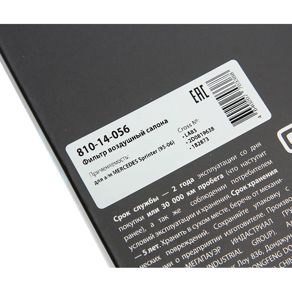 | Наименование | Фильтр воздушный салона MERCEDES Sprinter (95-06) MEGAPOWER |
