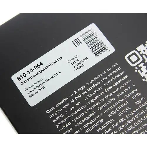 | Наименование | Фильтр воздушный салона NISSAN Almera (N16),Primera (P12) MEGAPOWER |