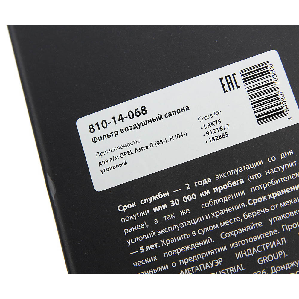 | Наименование | Фильтр воздушный салона OPEL Astra G (98-),H (04-) MEGAPOWER |