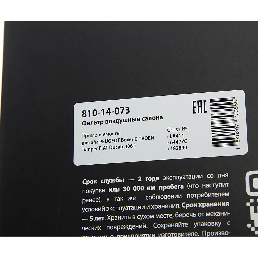 810-14-073 MEGA POWER Фильтр воздушный салона PEUGEOT Boxer CITROEN Jumper FIAT Ducato (06-) MEGAPOWER