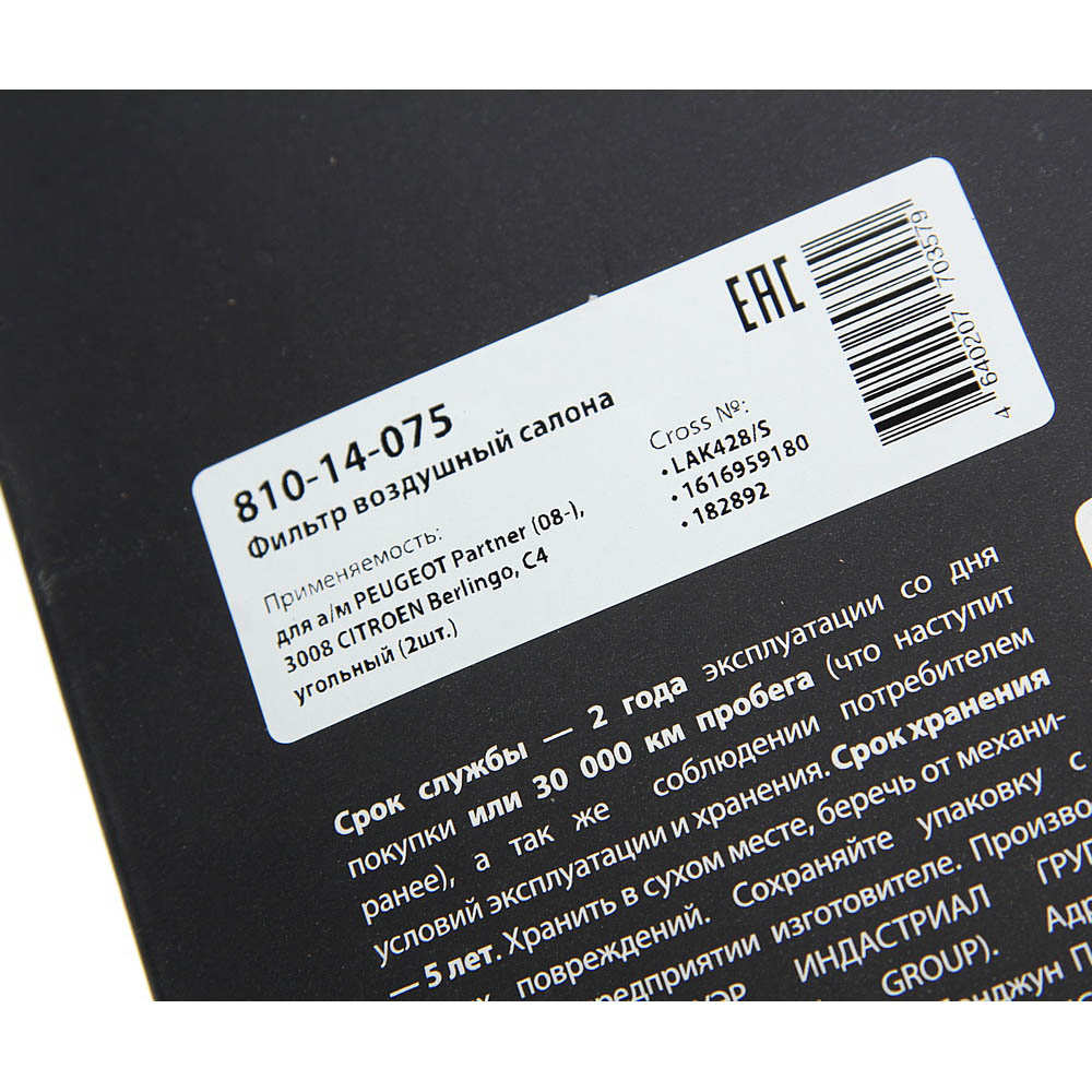 | Наименование | Фильтр воздушный салона PEUGEOT Partner (08-),3008 CITROEN Berlingo,C4 угольный |