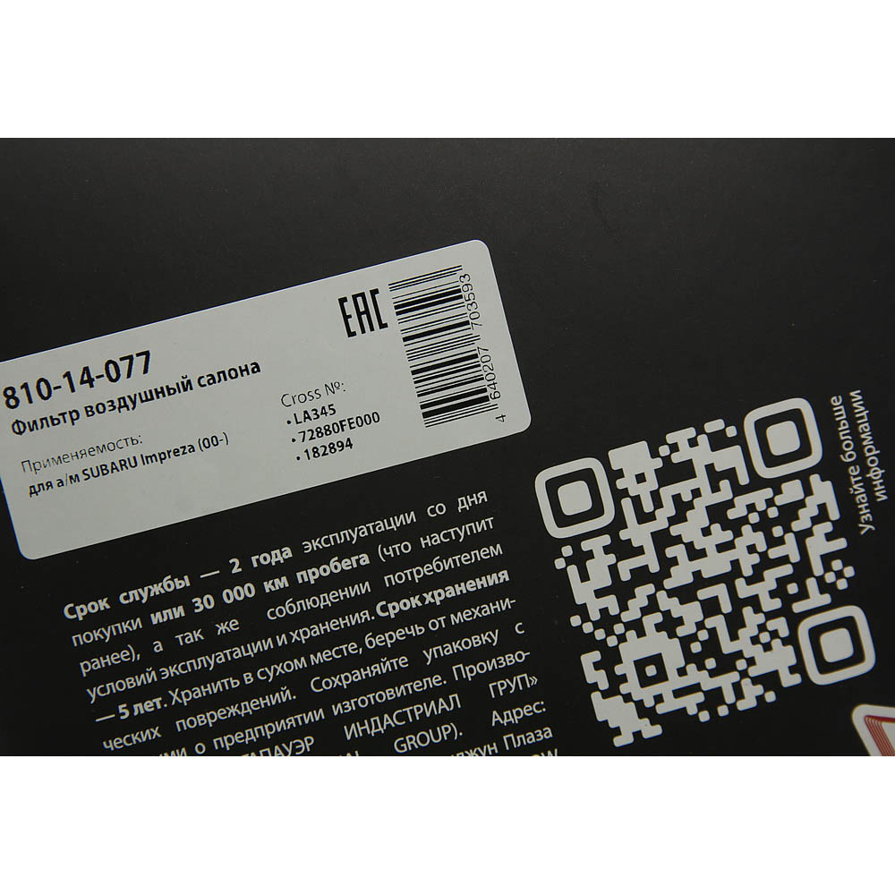 | Наименование | Фильтр воздушный салона SUBARU Impreza (00-) MEGAPOWER |