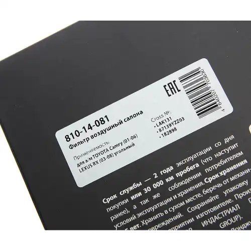 | Наименование | Фильтр воздушный салона TOYOTA Camry (01-06) LEXUS RX (03-08) угольный MEGAPOWER |