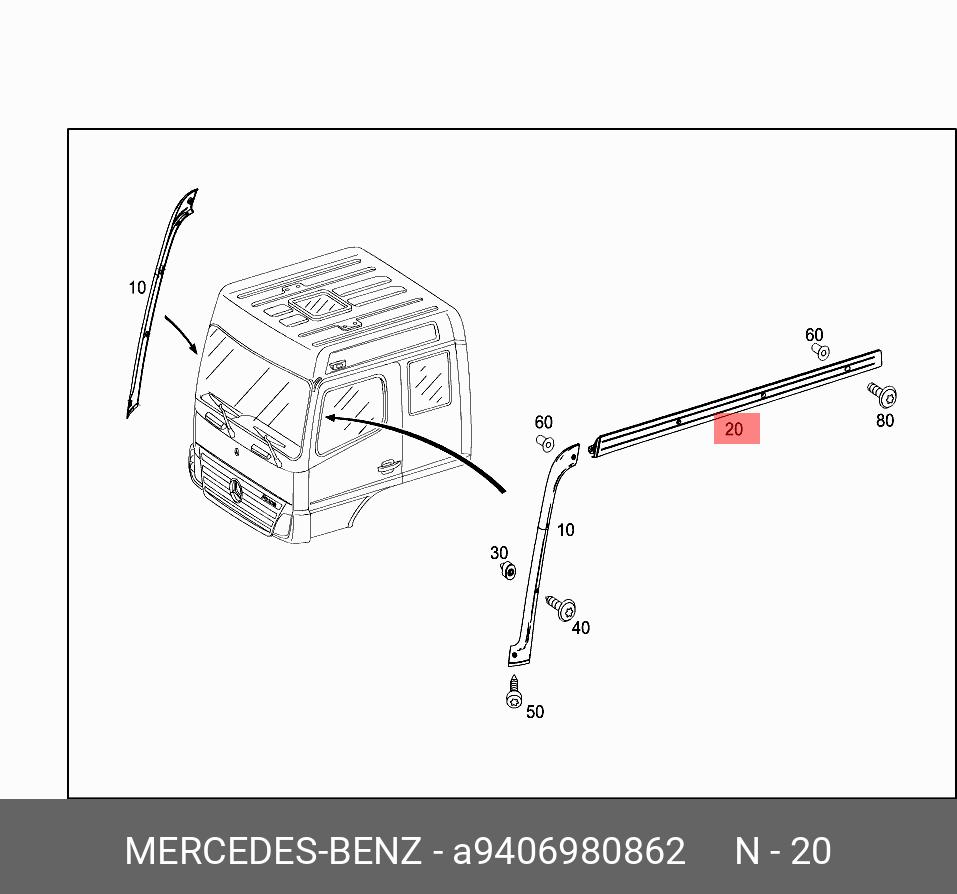 A 940 698 08 62 MERCEDES BENZ накладка крыши кабины