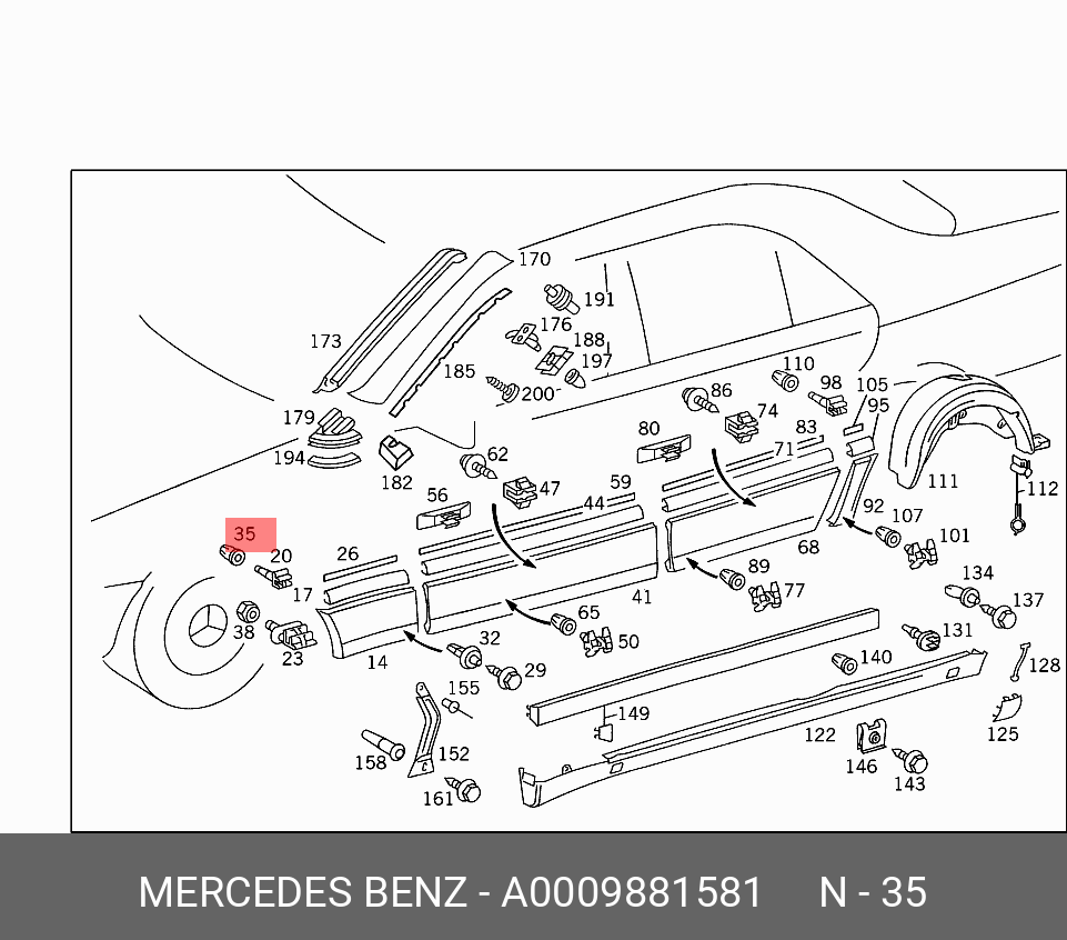 A 000 988 15 81 MERCEDES BENZ клипса крепления!\ MB W124/W126 84-93