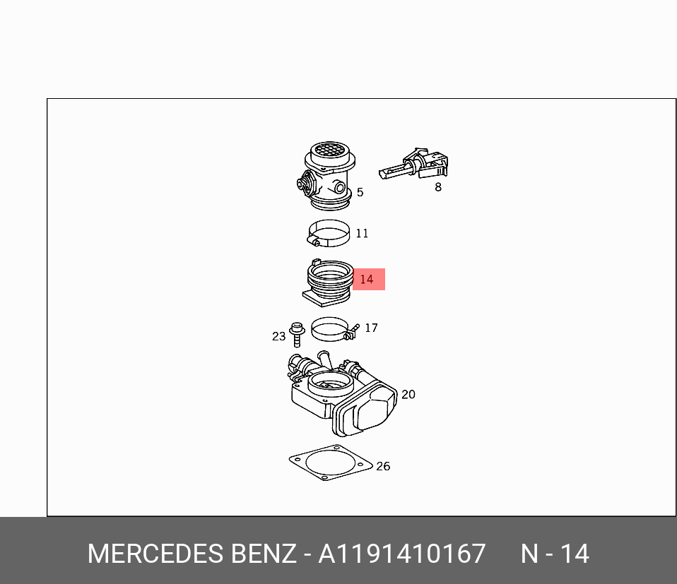 A 119 141 01 67 MERCEDES BENZ втулка патрубка расходомера!\ MB M119