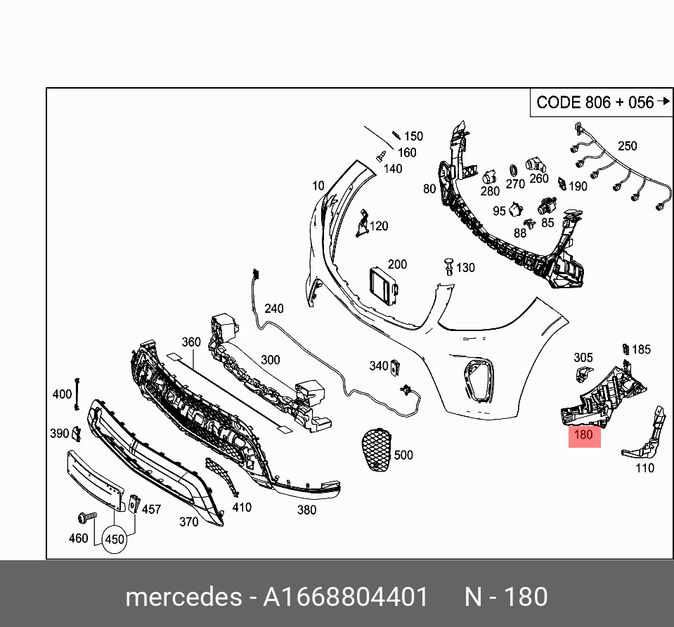 A 166 880 44 01 MERCEDES BENZ ОПОРА БАМПЕРА ПЕРЕДНЕГО