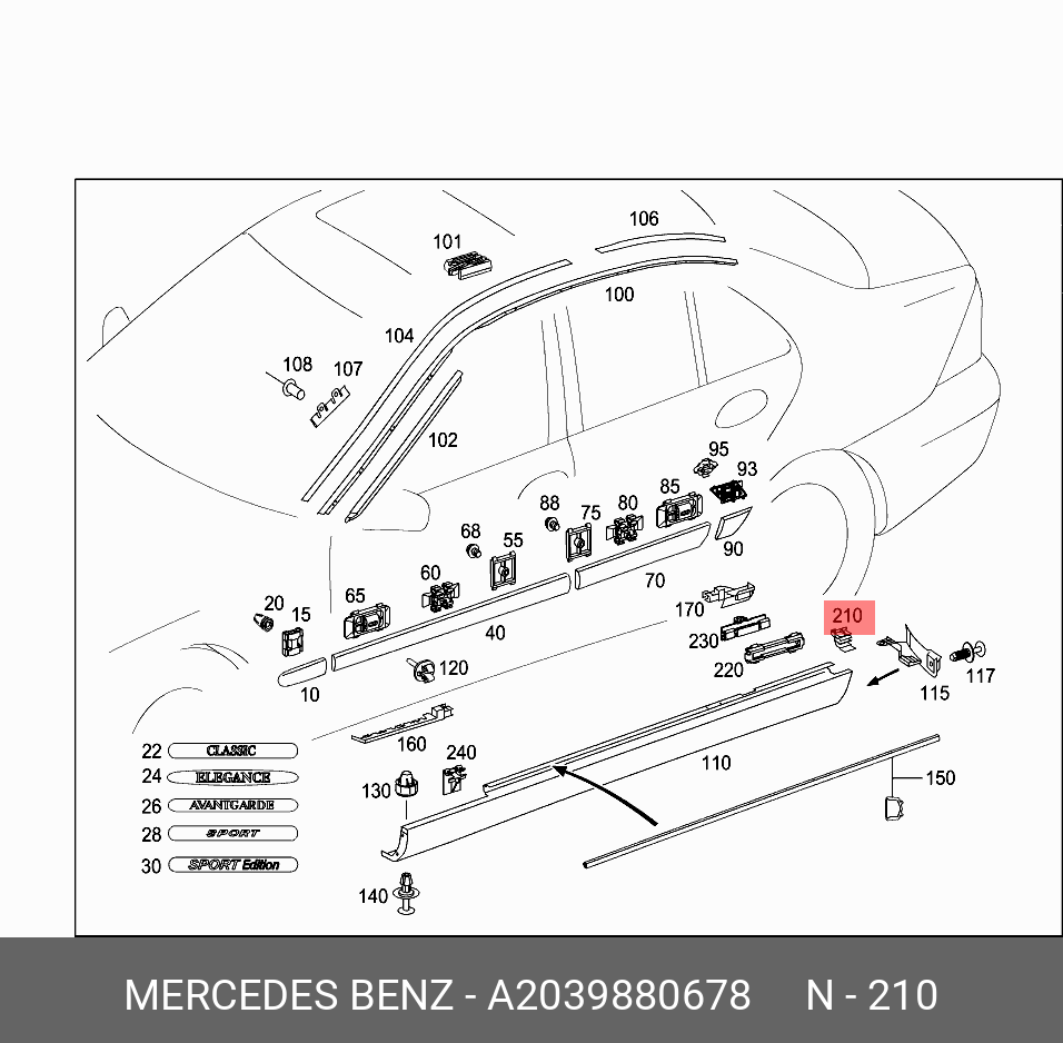 A 203 988 06 78 MERCEDES BENZ MERCEDES BENZ W203 (2000-2006) клипса накладки порога