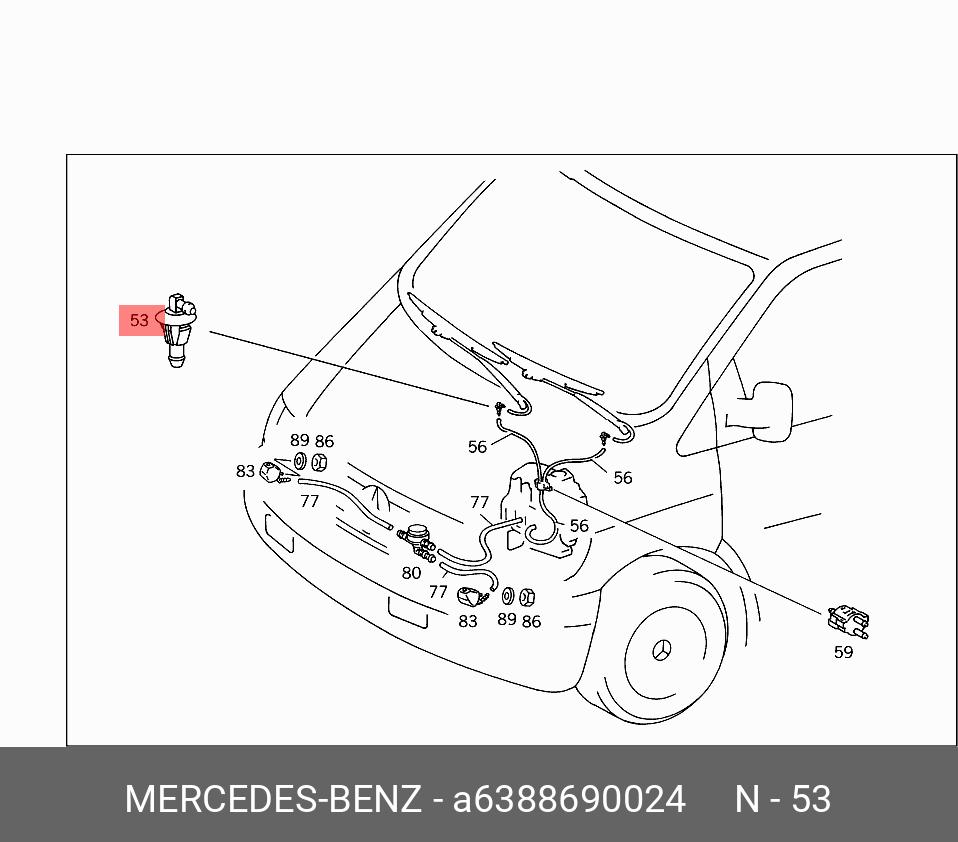 A 638 869 00 24 MERCEDES BENZ соединитель трубок стеклоомывателя! (п) D6-D4 Г-обр с клипсой\ MB Vito