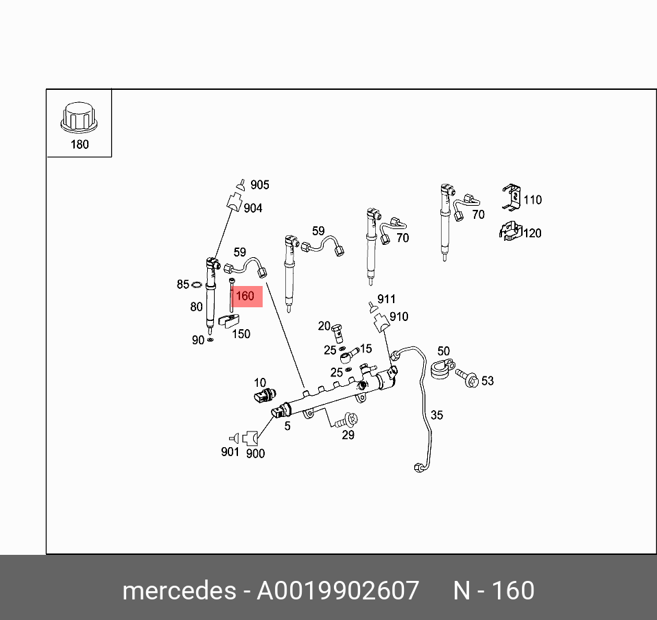 A 001 990 26 07 MERCEDES BENZ Болт крепления форсунки MERCEDES 0019902607