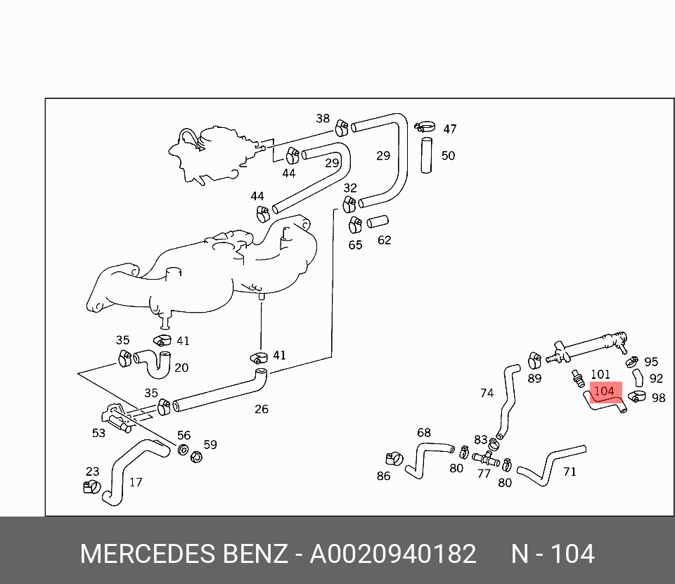 A 002 094 01 82 MERCEDES BENZ ШЛАНГ 0020940182