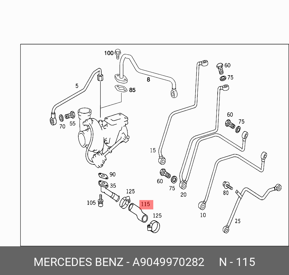 A 904 997 02 82 MERCEDES BENZ Патрубок MERCEDES Atego дв.OM924 обратного слива масла турбокомпрессора OE