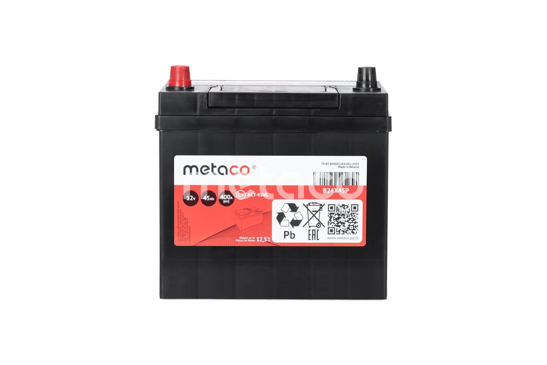 B24X45P METACO АКБ METACO 45АЧ 400А 237x127x225 asia (L) ETN1 с переходником на большие клеммы