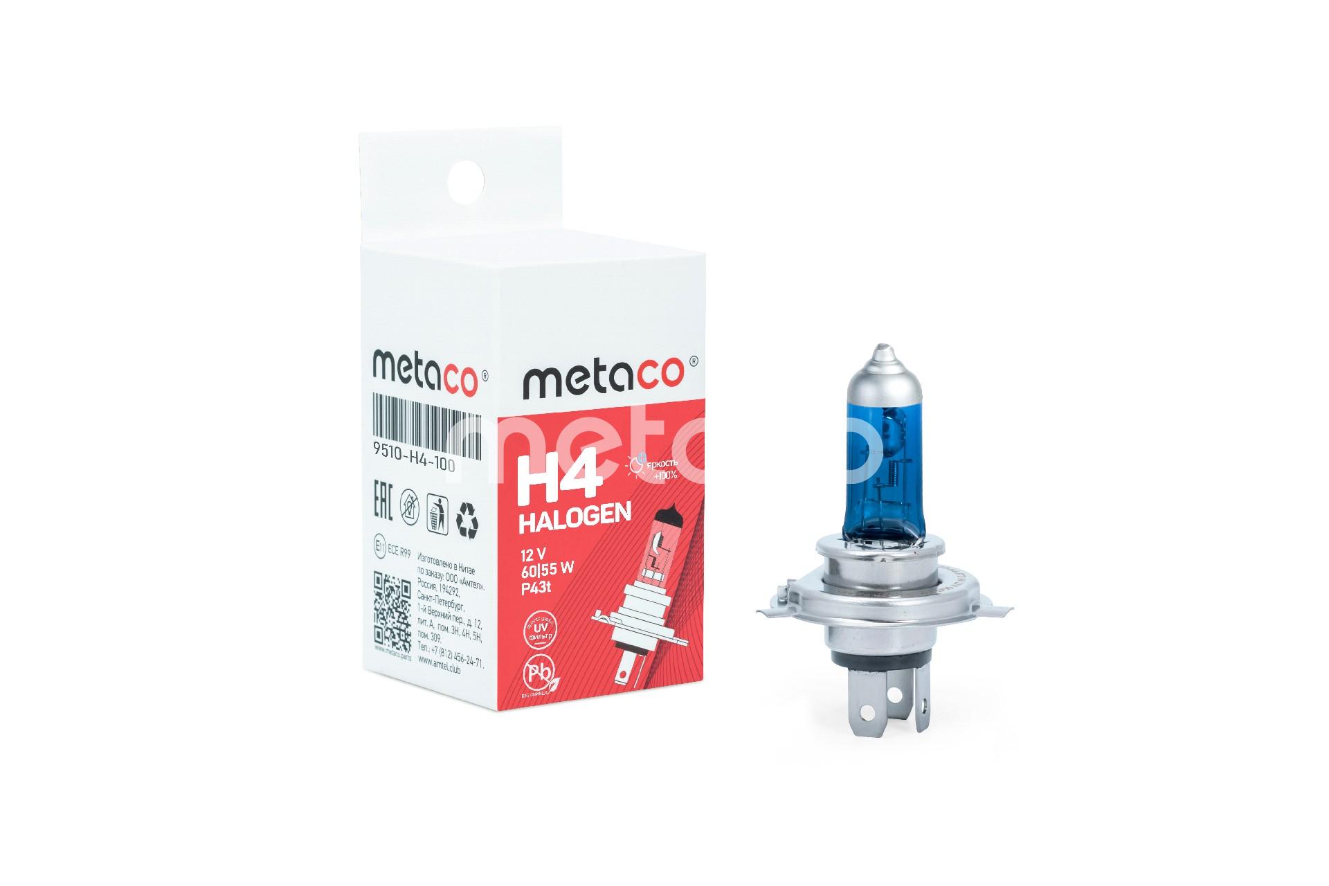 9510H4100 METACO Лампа галогеновая H4 12V 60/55W P43t +100% 9510H4100