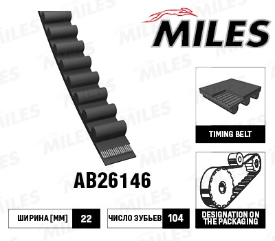 AB26146 MILES Ремень ГРМ (материал HNBR) 104X22 (Contitech CT1082) HONDA 1.6-1.7 ISUZU OPEL 3.