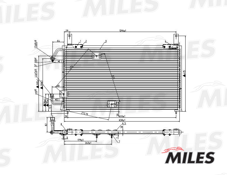 ACCB005 MILES Радиатор кондиционера (паяный) DAEWOO NEXIA 1.5 95-) ACCB005