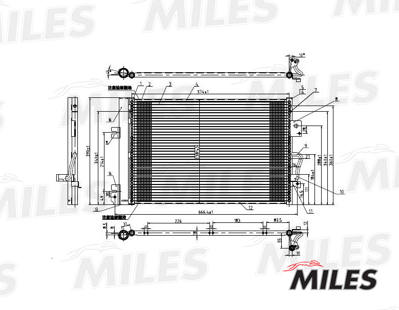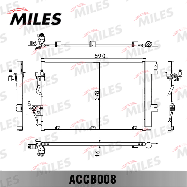 ACCB008 MILES Радиатор кондиционера (паяный) OPEL ASTRA H / ZAFIRA B 1.4-2.2 04-) ACCB008