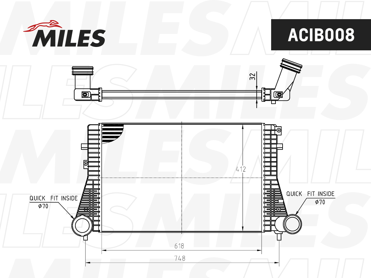 ACIB008 MILES Интеркулер VAG A3/OCTAVIA/G5/PASSAT 1.8T-2.0T/1.9TD/2.0TD 03-/05- ACIB008