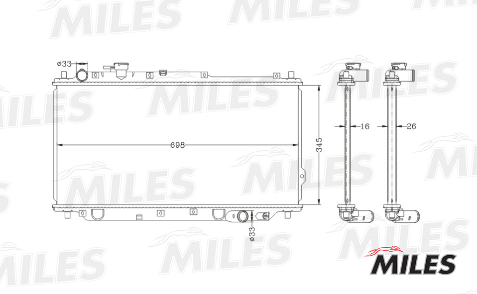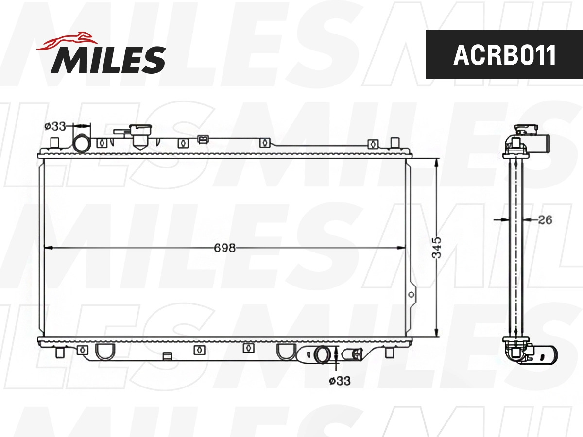 ACRB011 MILES Радиатор (паяный) KIA Shuma 96-/Sephia 98-/Karens 02- 1.5/1.6/1.8 MT ACRB011