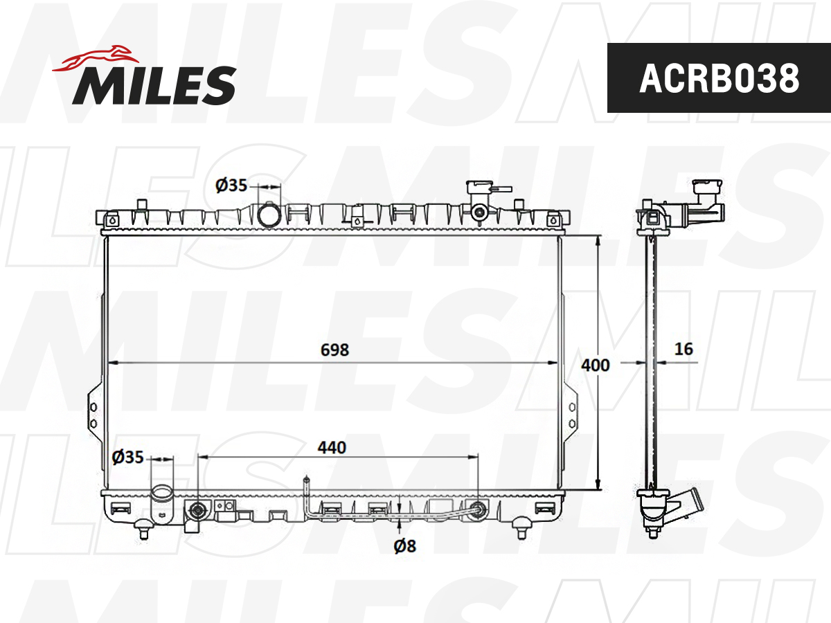 ACRB038 MILES Радиатор (паяный) HYUNDAI SANTA FE (01-06) 2.0/2.7 ACRB038