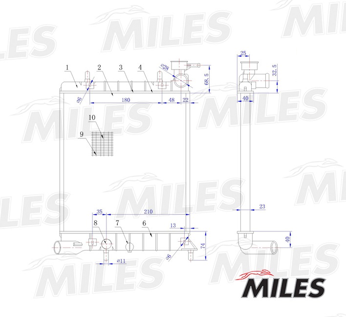 ACRM007 MILES Радиатор (механическая сборка) HYUNDAI ACCENT 1.5/1.6 00-) (NISSENS 67022) ACRM0