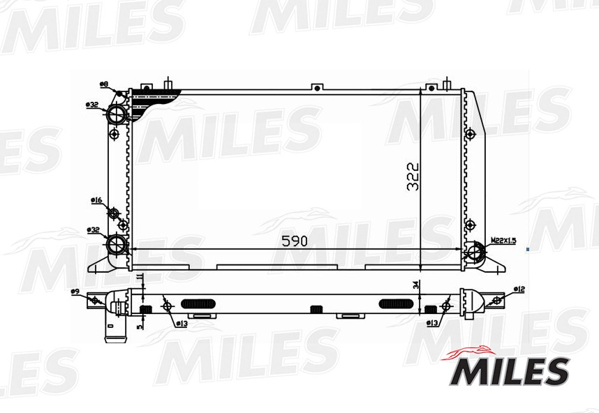 ACRM012 MILES Радиатор (механическая сборка) AUDI A80 1.6-2.0 86-94) (NISSENS 604361) ACRM012