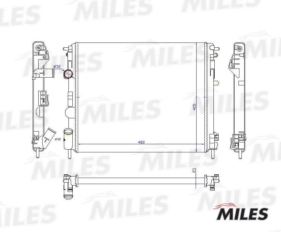 ACRM015 MILES Радиатор (механическая сборка) RENAULT LOGAN/CLIO 1.2-1.6/1.9D 98- с конд.) (NIS