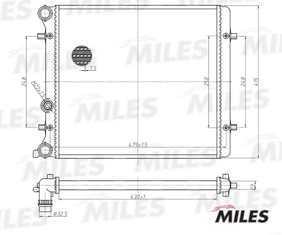 ACRM164 MILES Радиатор (паяный) VAG G4/BORA/OCTAVIA 1.4/1.6 99-05 (NISSENS 641011) ACRM164