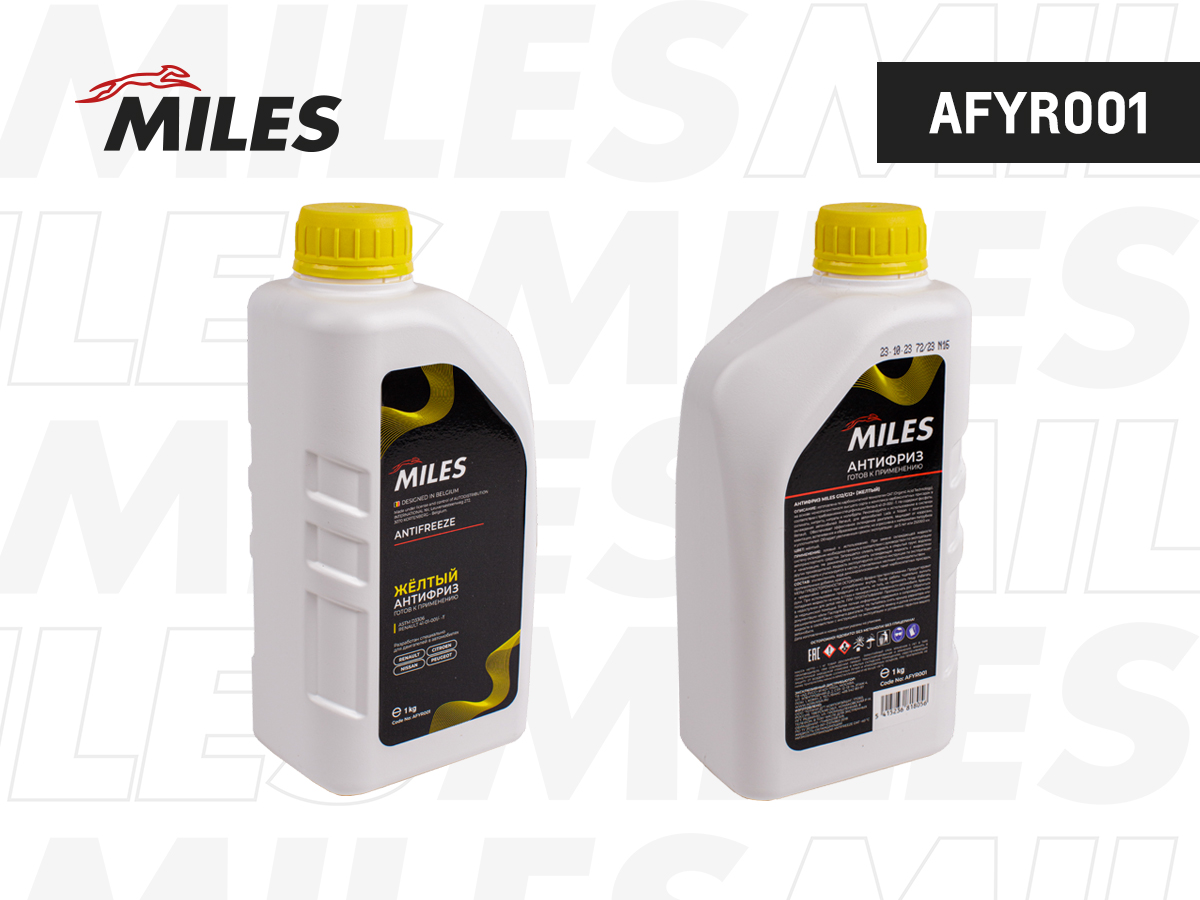 AFYR001 MILES Антифриз готов к применению G12/G12+ (жёлтый, SUPER LONG LIFE COOLANT -40C) 1 к