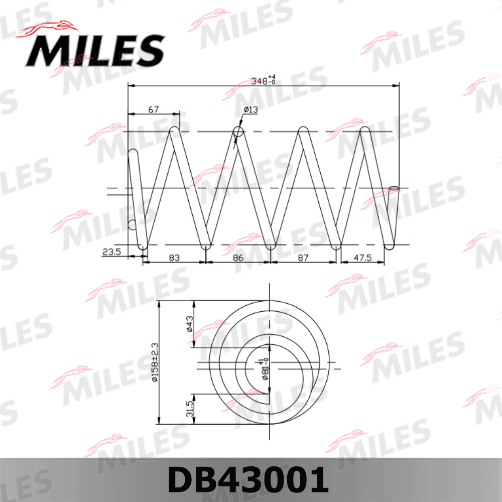 DB43001 MILES Пружина передней подвески FORD FOCUS II 1.6D/1.8/2.0 (KYB RG3405) DB43001
