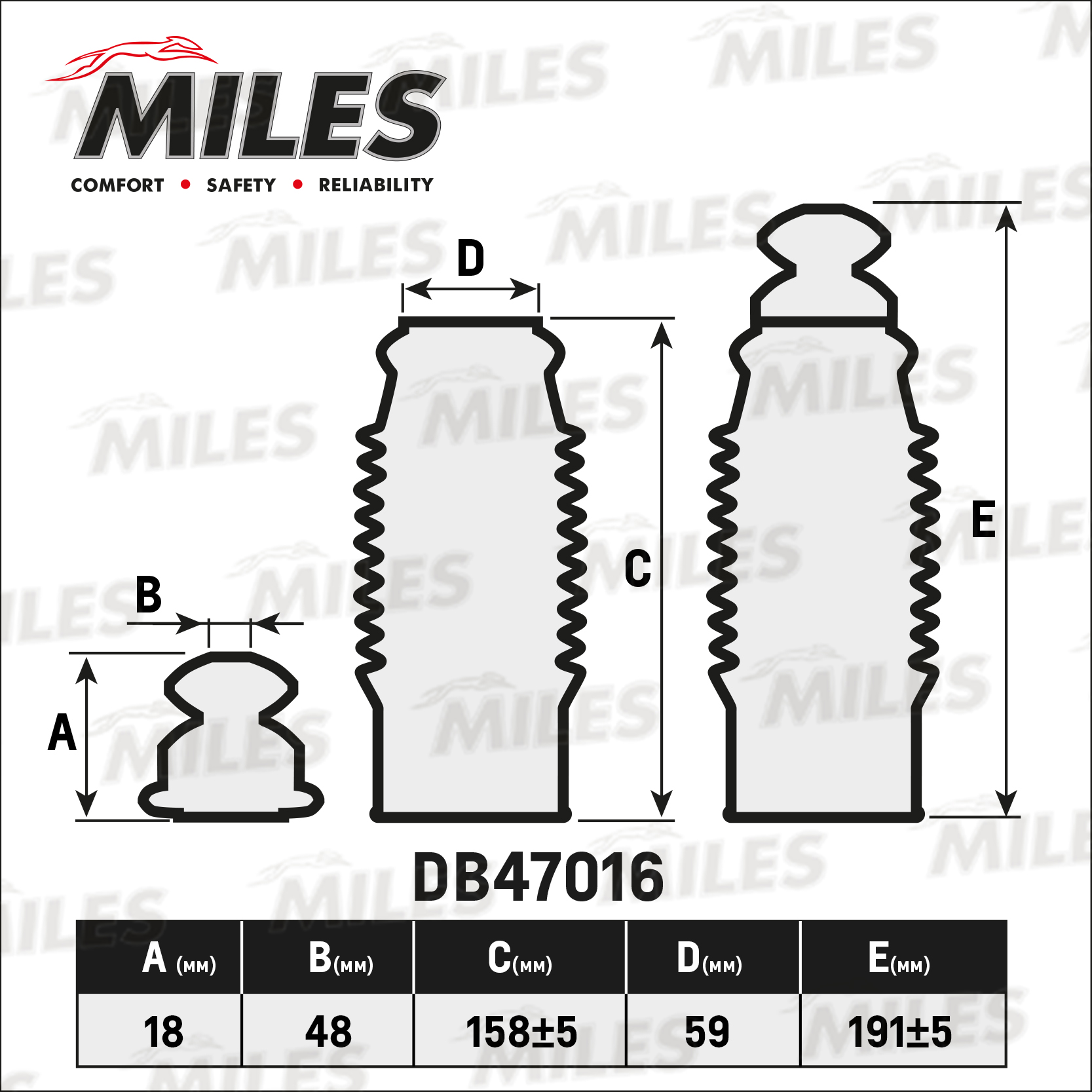 DB47016 MILES Сервисный комплект (пыльник и отбойник на 1 амортизатор) DB47016