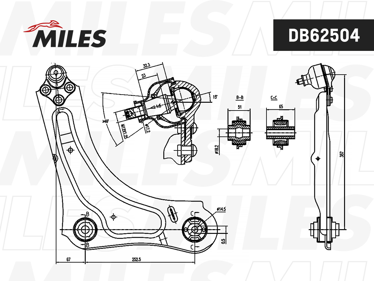 DB62504 MILES Рычаг передней подвески нижний левый RENAULT FLUENCE 10-/MEGANE III DB62504