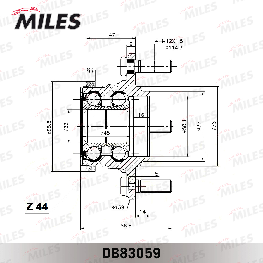 DB83059 MILES Ступица колеса задняя с подшипником HYUNDAI ELANTRA/KIA CERATO 01-09 (SKF VKBA68
